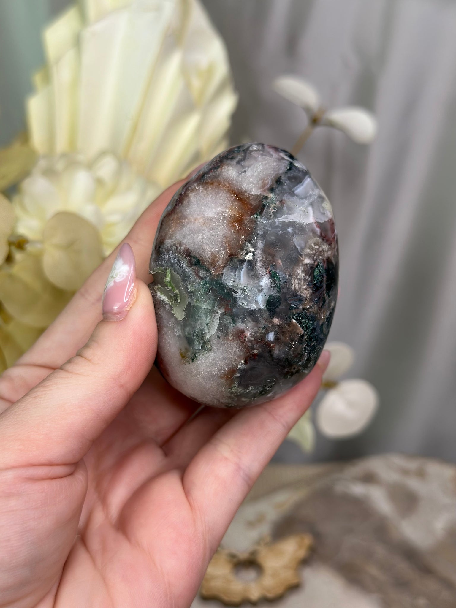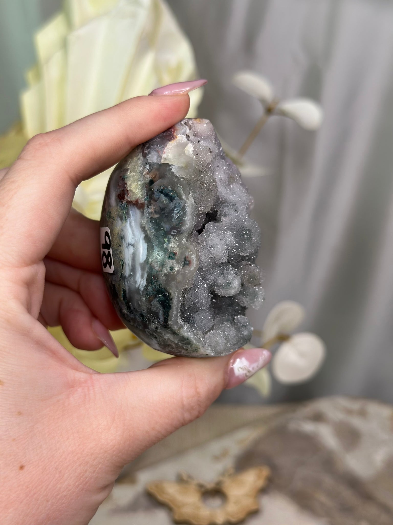 Mixed Amethyst x Moss Agate Sugar Druzy Egg #98