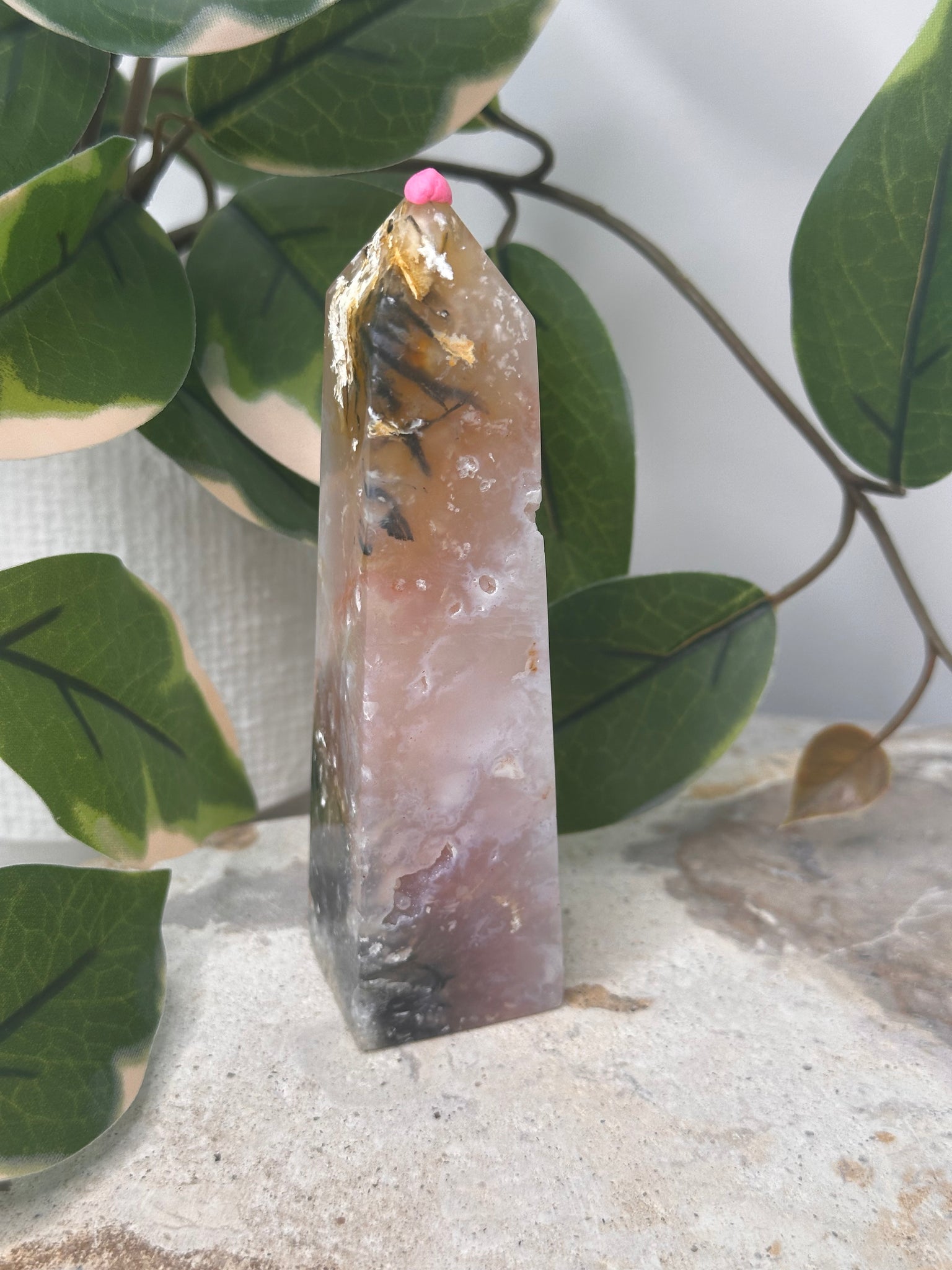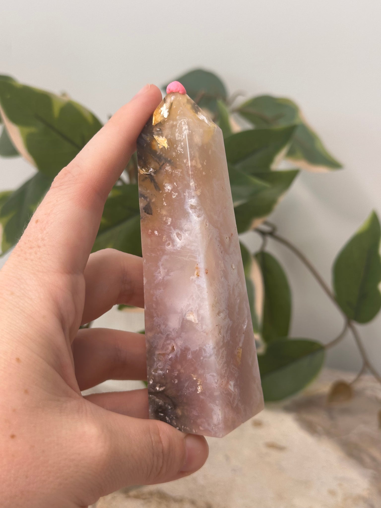 Pink Plume Agate Tower #55