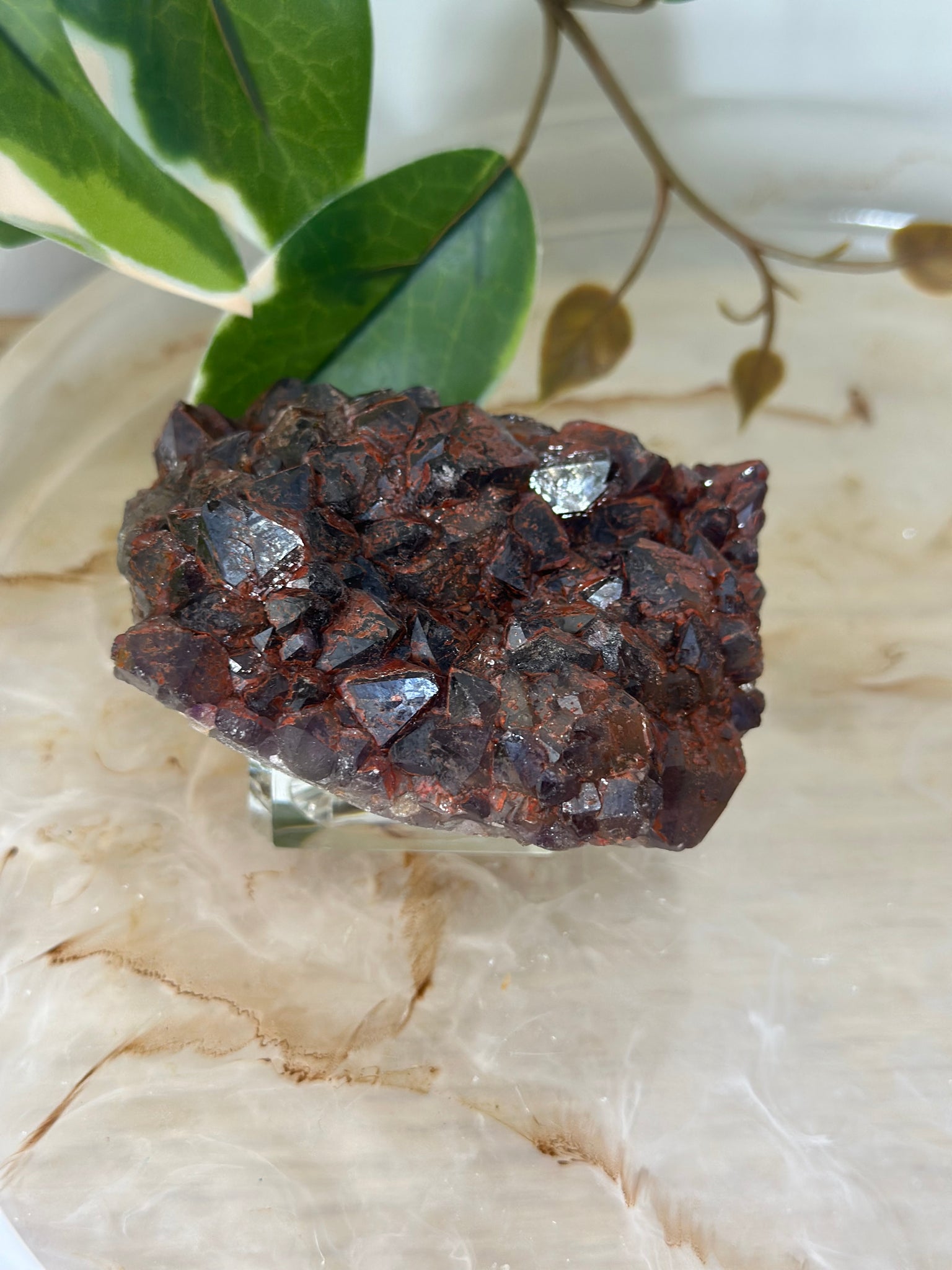 Alien Amethyst~Shimmery Deep Red/Purple Amethyst with Hematite Inclusions Cluster #59