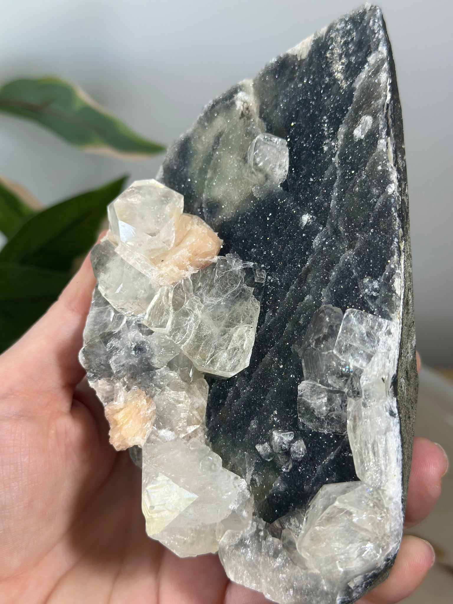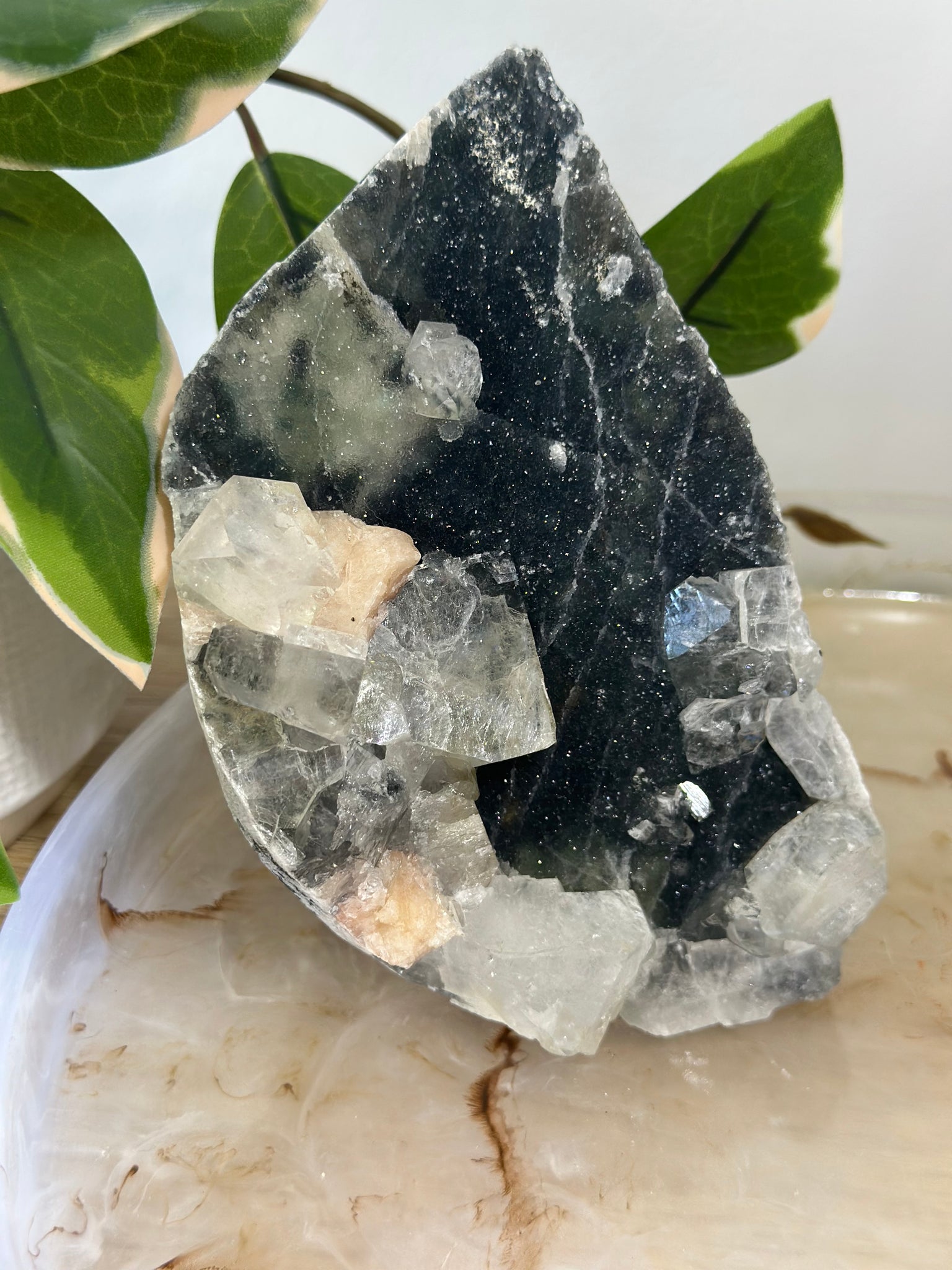Blue~Black Chalcedony With Glass Apophyllite & Peach Stillbite Cluster #230
