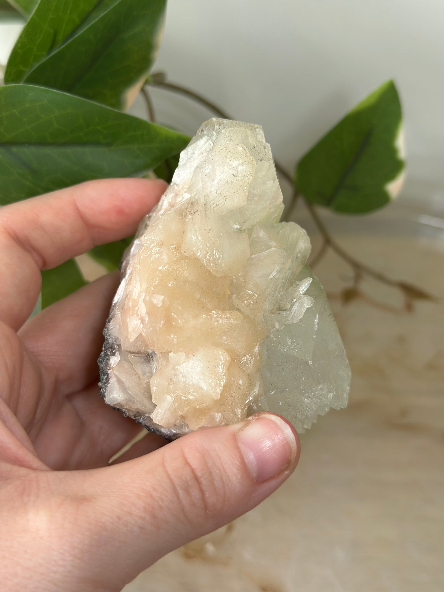 Glass Green Apophyllite~Peach Stillbite~Pink/Green Chalcedony Specimen #115
