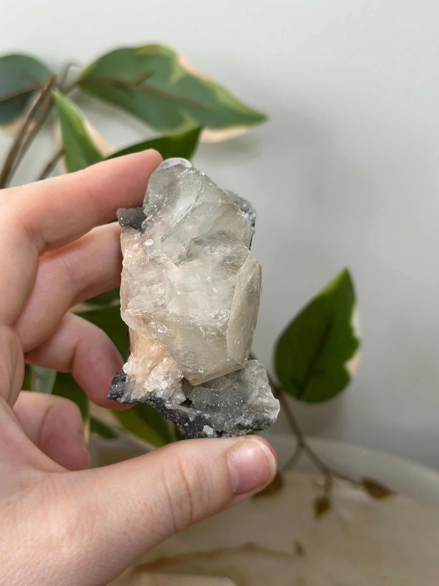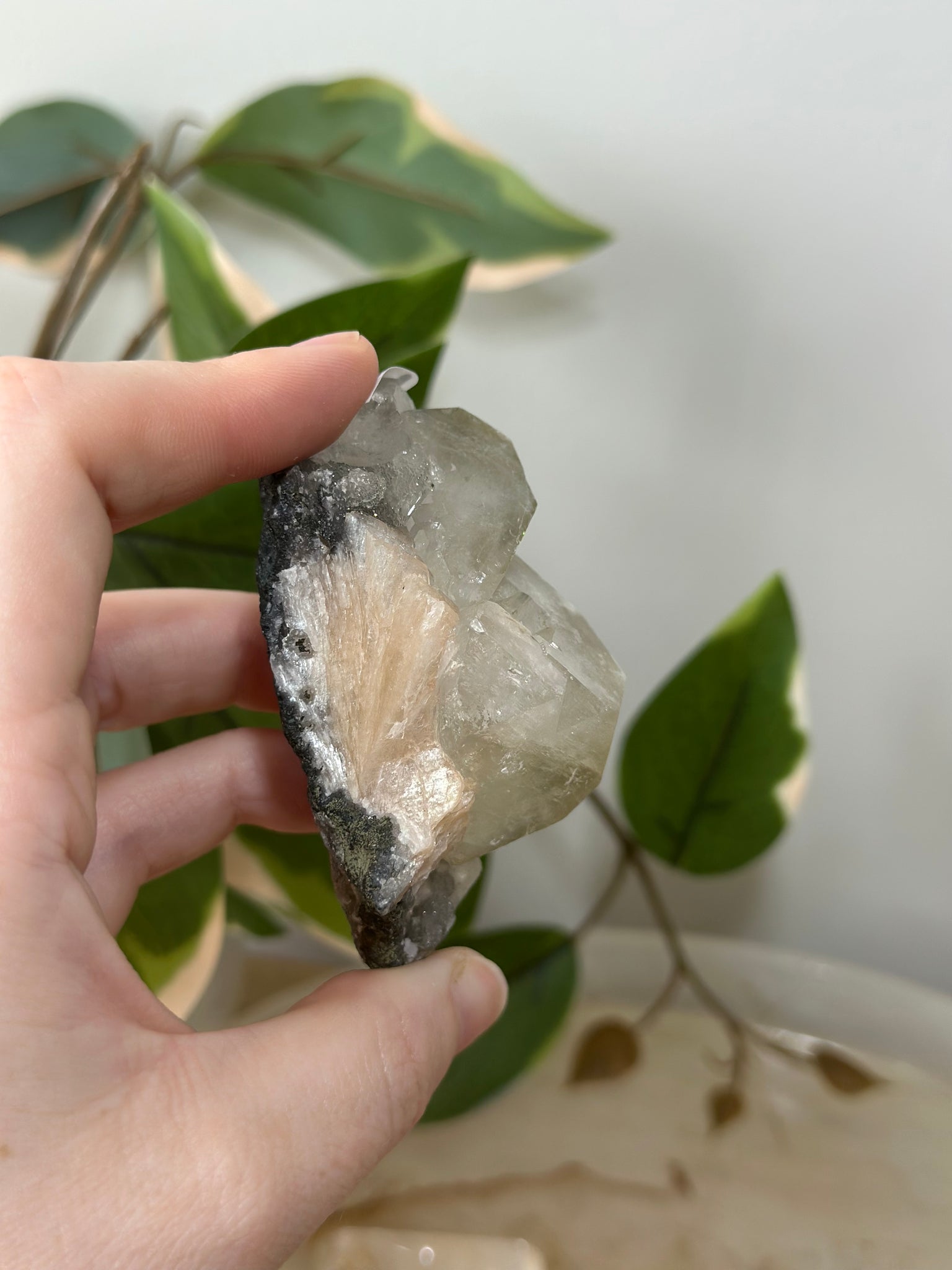 Glassy Green/Black Apophyllite Cubes~Peach Stillbite~Black/Silver Chalcedony Specimen #43