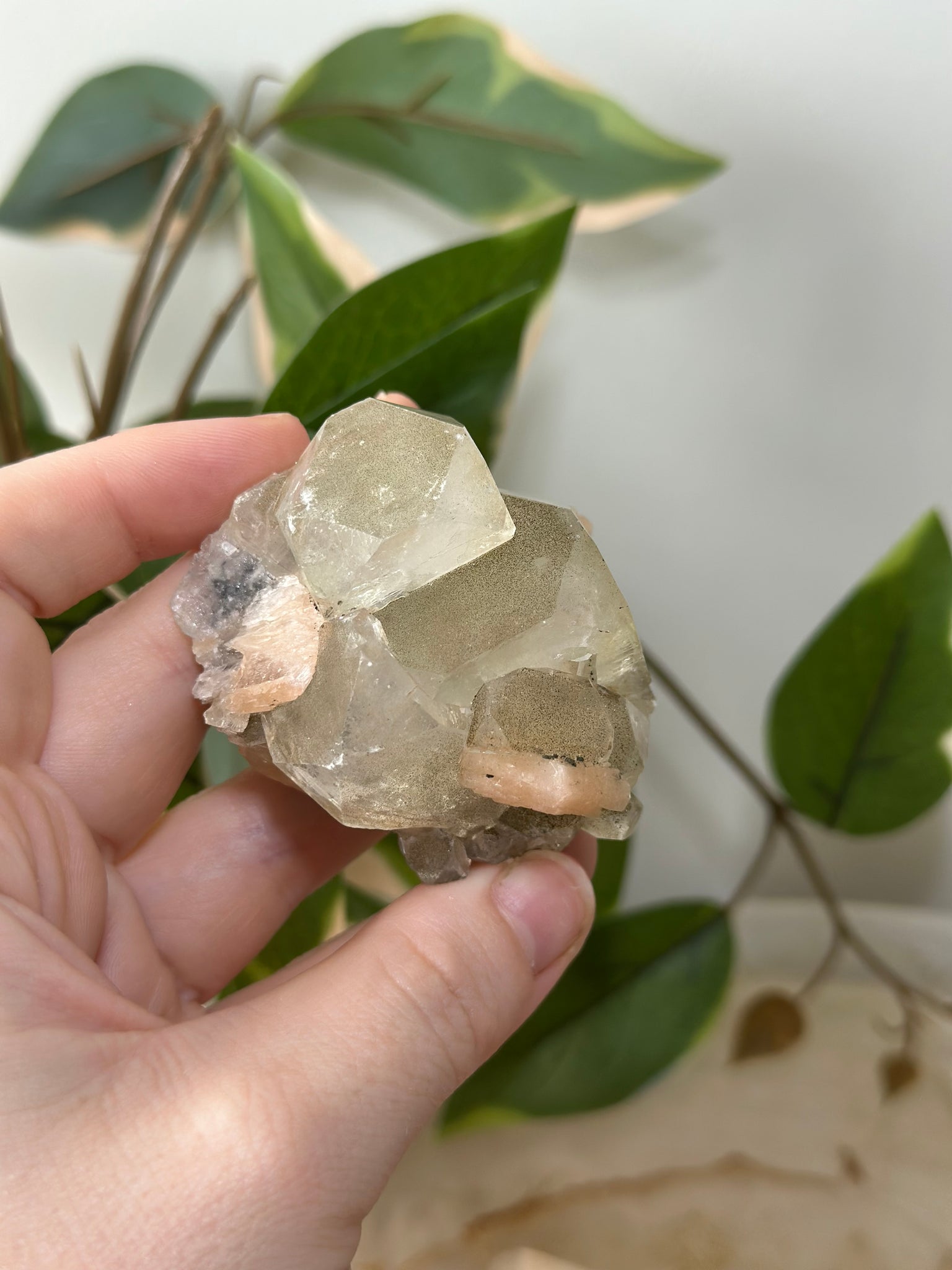 Glassy Green/Black Apophyllite Cubes~Peach Stillbite~Black/Silver Chalcedony Specimen #46