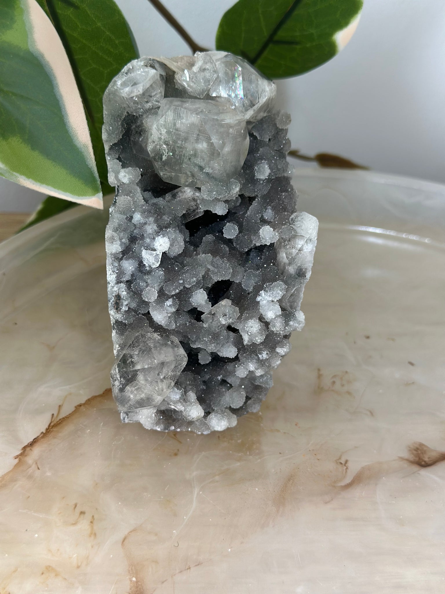 Glassy Green/Black Apophyllite~Peach Stillbite~Blue/Black/Green Chalcedony Cluster #80