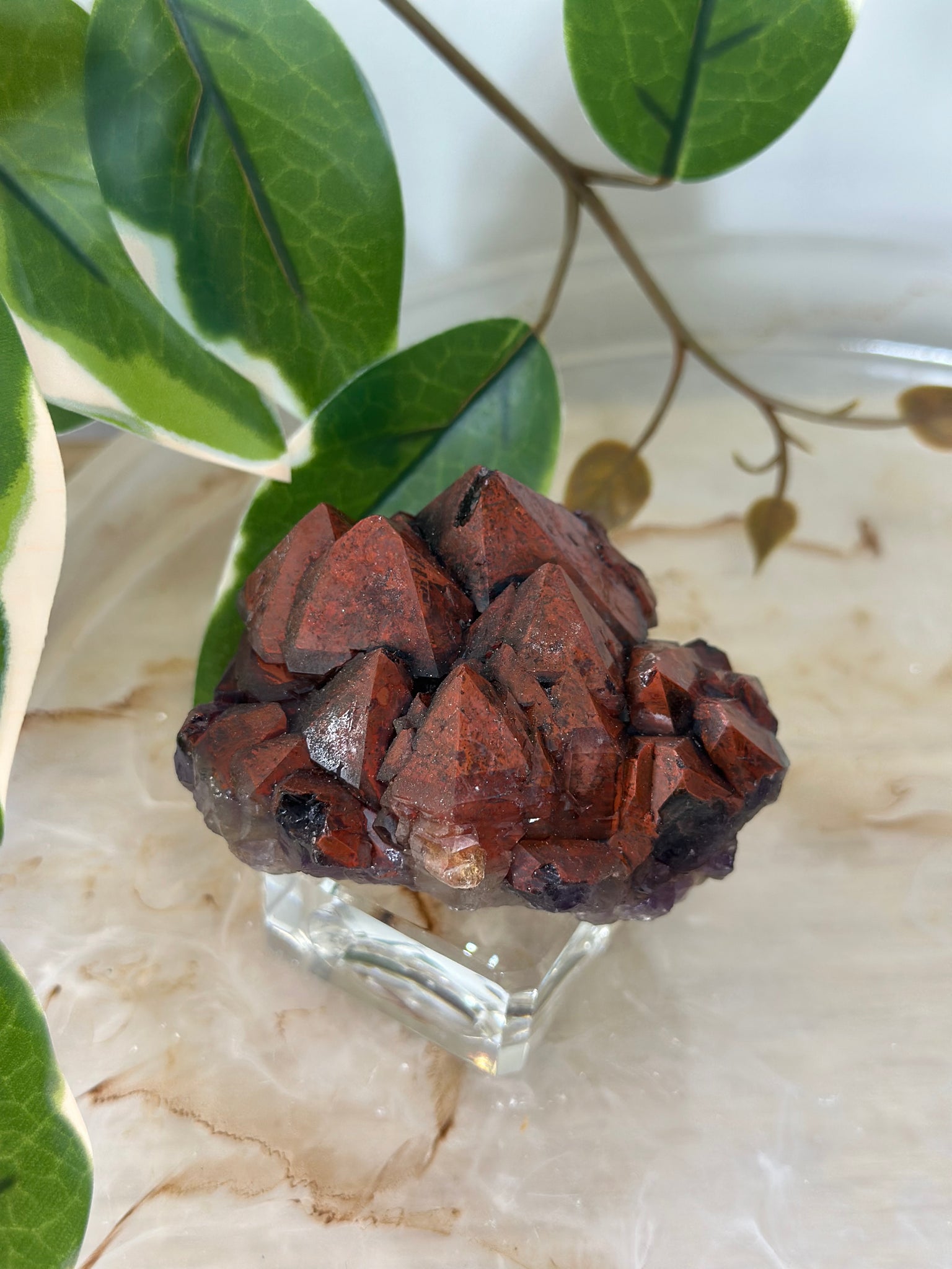 Glittery Deep Red/Purple Amethyst with Hematite Inclusions Cluster #65