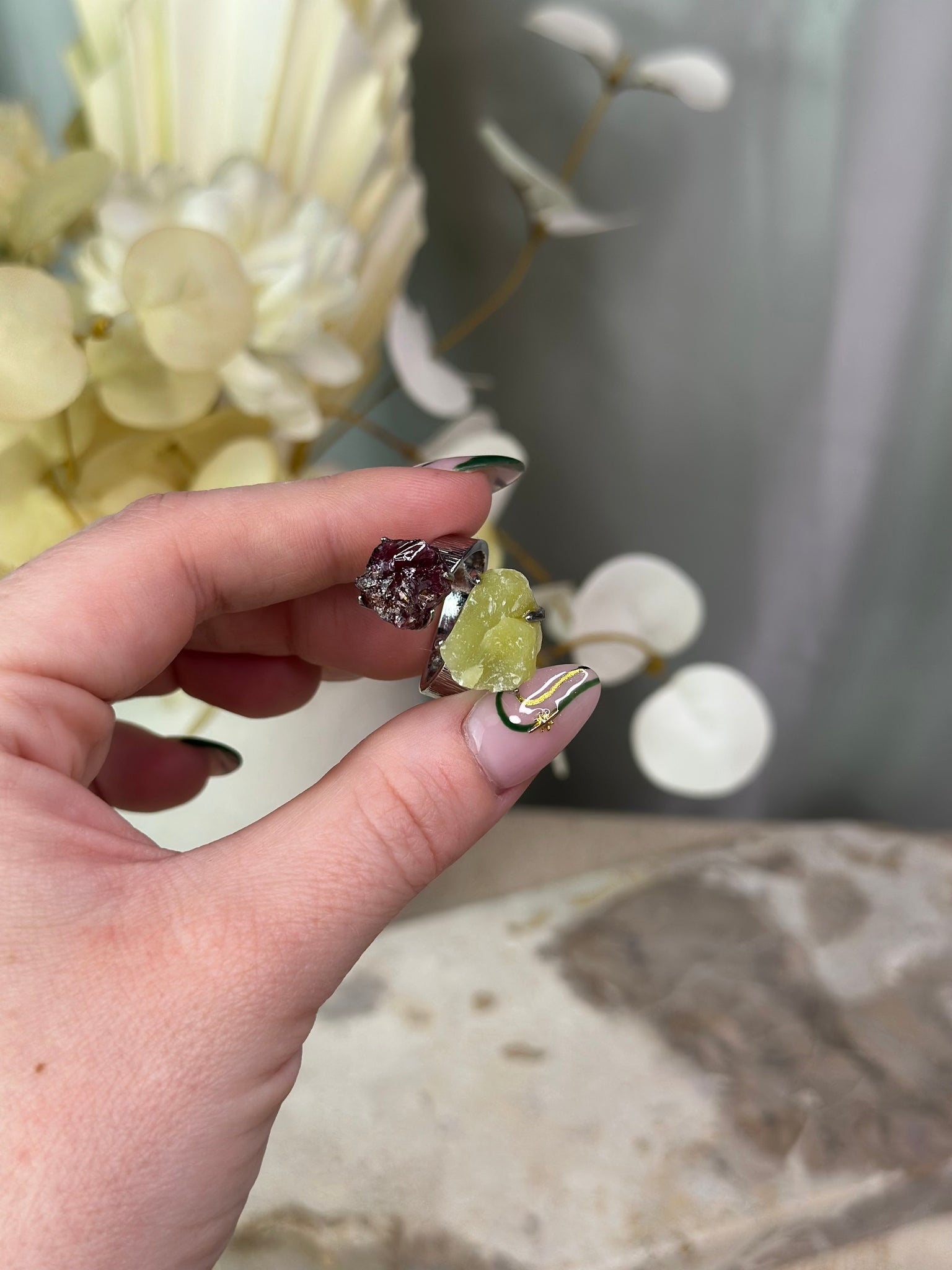 Serpentine x Garnet Alloy Adjustable Ring