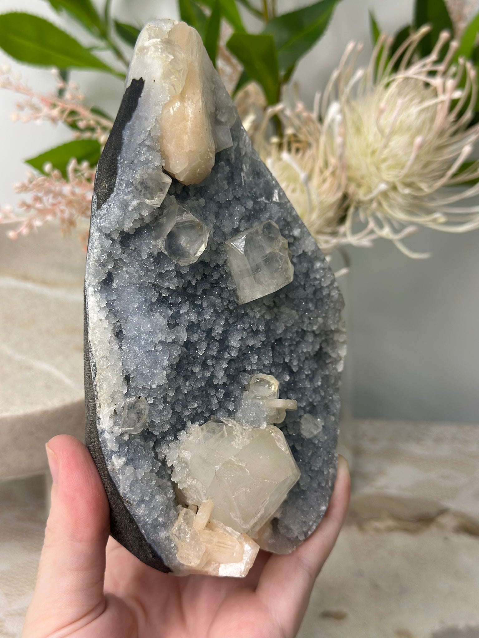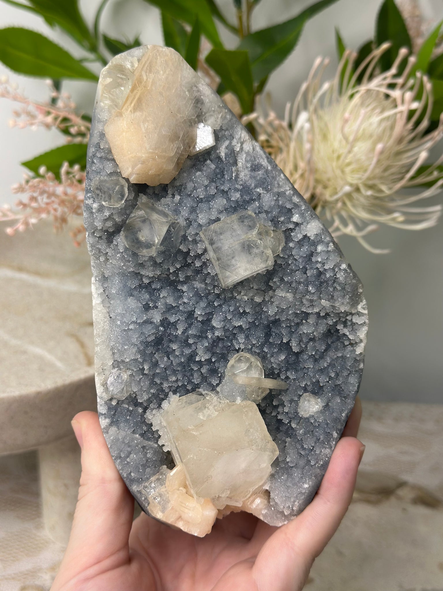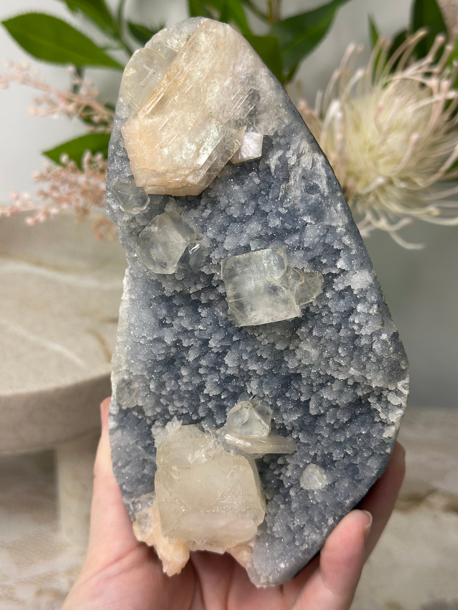 Sky Blue Chalcedony~Peachy Stillbite~Glass Apophyllite Cluster #285