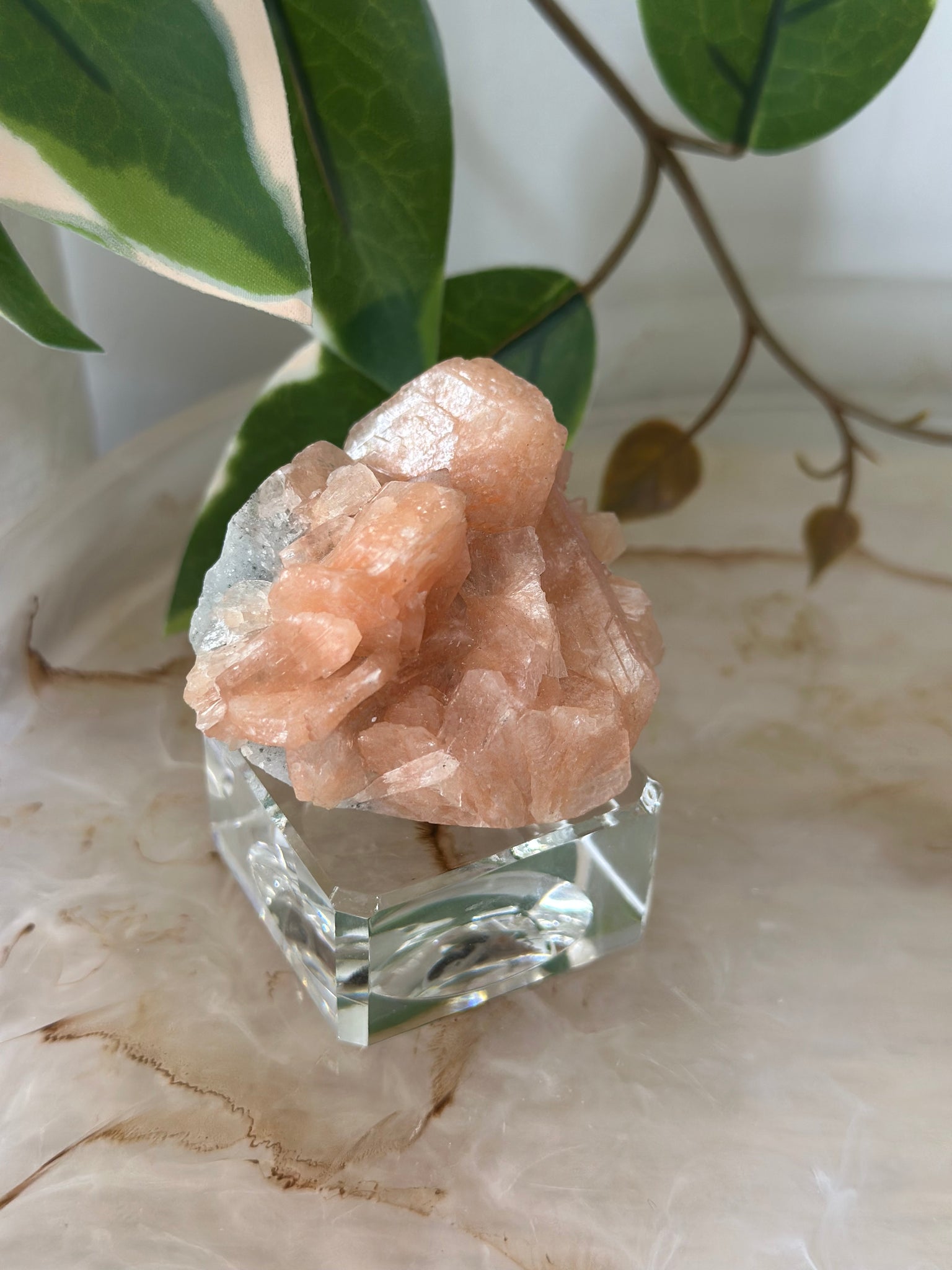 Sugary Peach Stillbite On Vibrant Blue Chalcedony Specimen #60