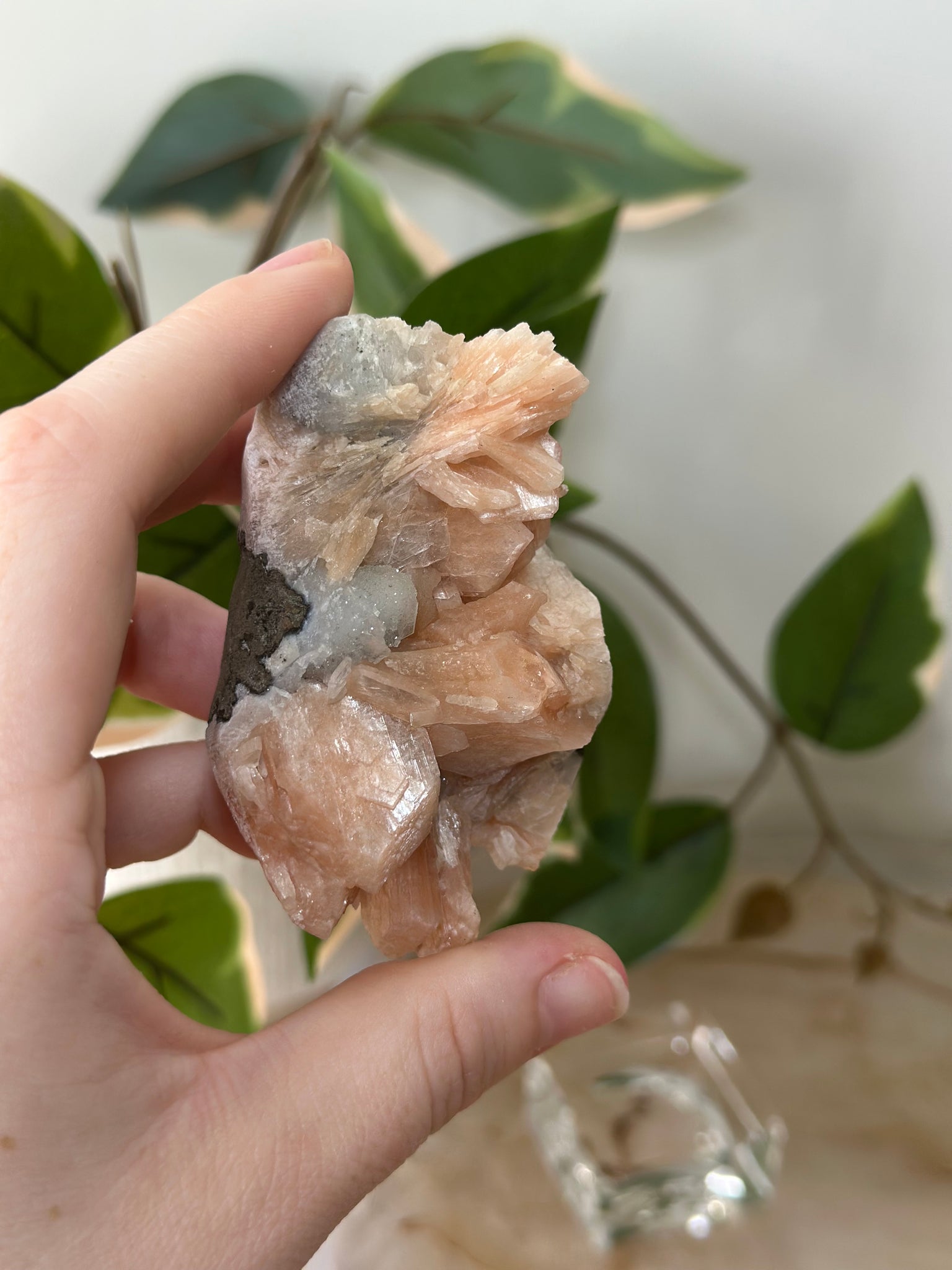 Sugary Peach Stillbite On Vibrant Blue Chalcedony Specimen #84