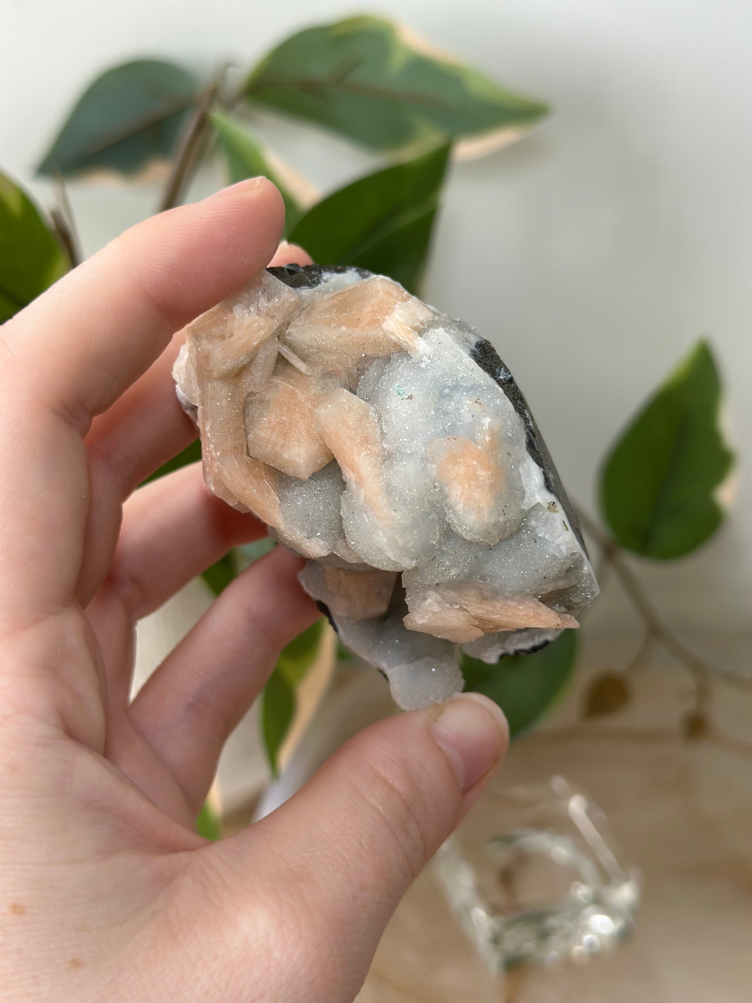 Sugary Peach Stillbite On Vibrant Blue Chalcedony Specimen #86